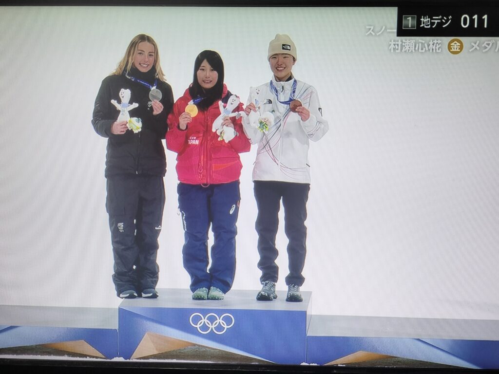 目覚めてすぐTVをつけると、ちょうど表彰式(女子スノーボード)をやっていました。
